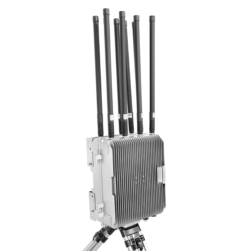 এটি একটি সর্বমুখী বহিরঙ্গন ফিক্সড ড্রোন জ্যামার যা গিম্বল ডিটেকশন সহ। পণ্যের বাইরের অংশ উচ্চ-পরিবাহী এবং জলরোধী বৈশিষ্ট্যযুক্ত উচ্চ-মানের অ্যালুমিনিয়াম দিয়ে তৈরি। ছয়টি ছোট দিকনির্দেশক জ্যামার স্বয়ংক্রিয়ভাবে সনাক্ত এবং আঘাত করার জন্য একসাথে ইনস্টল করা প্রয়োজন যাতে নিম্ন-উচ্চতা বা উচ্চ-উচ্চতার এলাকার জন্য 360° সর্বাঙ্গীণ সুরক্ষা প্রদান করা যায়। এই পণ্যটিতে একটি নীচের তাপ অপচয় নকশা রয়েছে এবং এটি বহিরঙ্গন উচ্চ-ক্ষমতার অপারেশন সমর্থন করে। এটি ব্যাটারি দিয়ে সজ্জিত নয়, তবে একটি 220V অতি-উচ্চ পারফরম্যান্স পাওয়ার সাপ্লাই সহ। এটি স্বয়ংক্রিয়ভাবে চারপাশের ড্রোনগুলিকে সনাক্ত এবং হস্তক্ষেপ করতে পারে